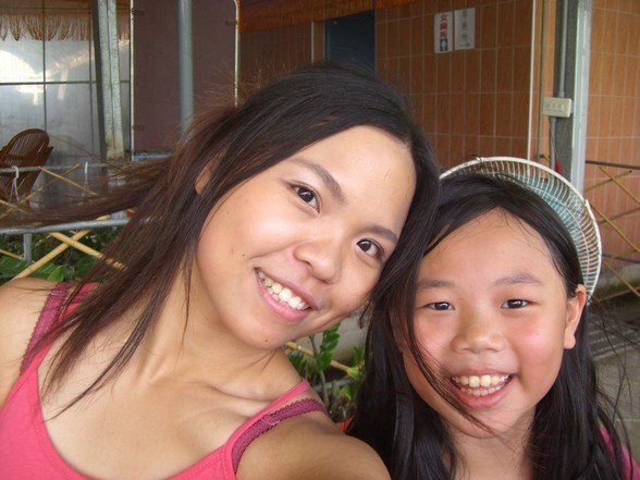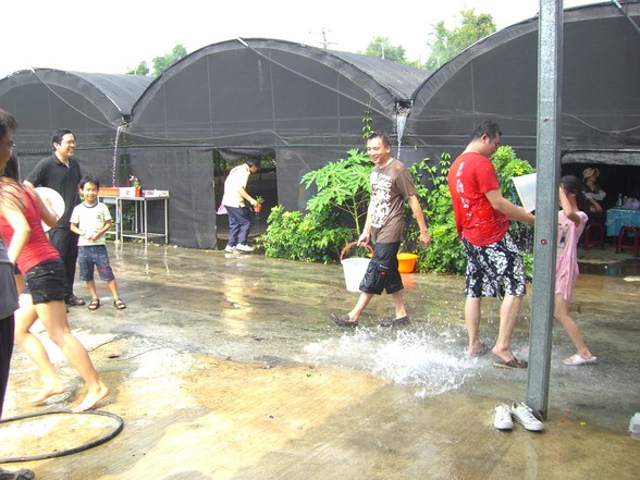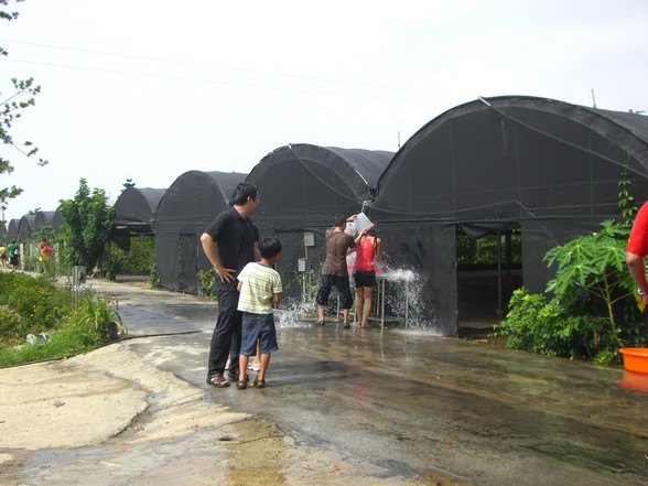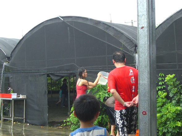 我跟冠文的老婆先溜到等等要BBQ的屋簷下乘涼,